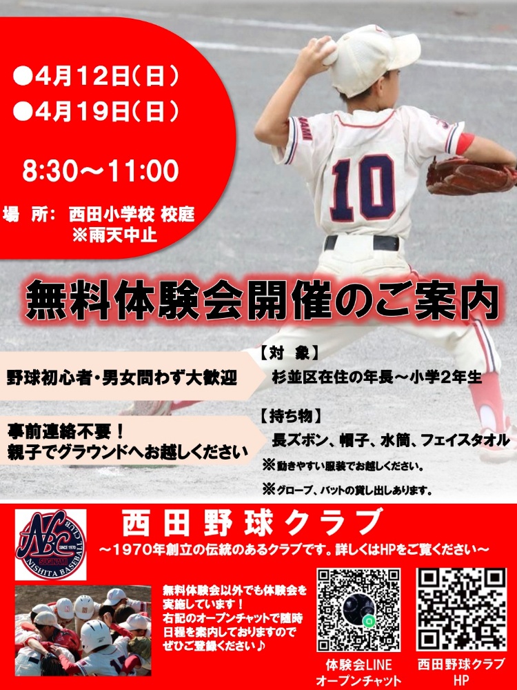 ⭐西田野球クラブでは練習試合をしていただけるチームを随時募集しております!遠征も可能です。メールフォームからのご連絡をお願いいたします!
